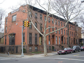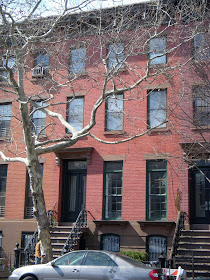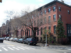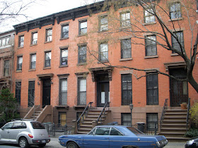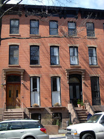 There are many similar houses nearby in the North Slope, off Flatbush. Below is part of a row in Prospect Place between 5th & 6th Avenues, simple brick-front Italianate from the mid 19th century: